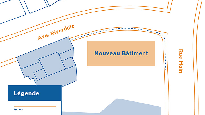 * Remarque : l'illustration du nouveau bâtiment n'est pas à l'échelle. Il sera plus petit que ce qui est représenté.